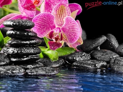 Puzzle Czarne, Kwiaty, Woda, Kamienie