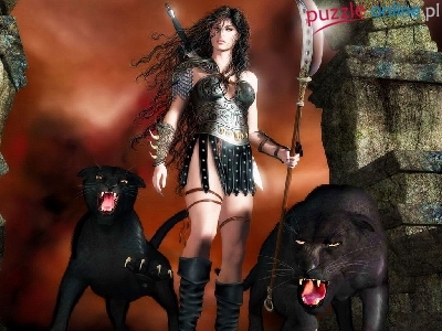 Puzzle Czarne, Dziewczyna, Zbroja, Pumy