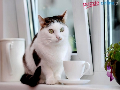 Puzzle Czarny, Kot, Biało, Filiżanka