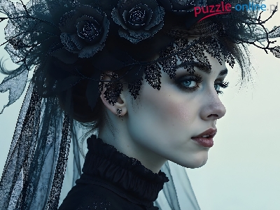 Kobieta, Czarny, Półprofil, AI, Welon