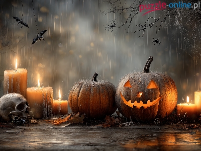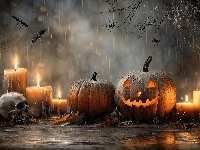 Deszcz, Dynie, Halloween, Czaszka, Grafika AI, Åšwiece