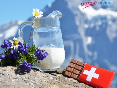 Puzzle Czekolada, Góry, Kwiatki, Dzbanek