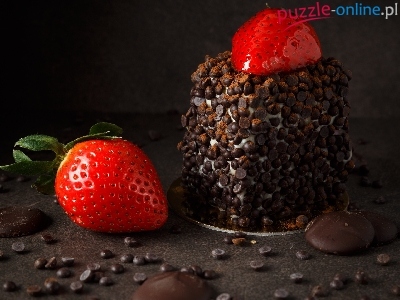 Czekolada, Ciemne Tło, Ciastko, Talerzyk, Truskawki