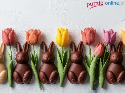 Tło, Kompozycja, Białe, Kolorowe, Tulipany, Króliki, Kwiaty, Czekoladowe