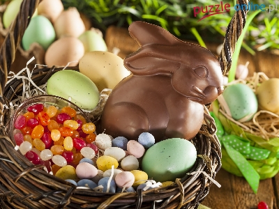 Czekoladowy, Kompozycja, Koszyczek, Wielkanoc, ZajÄ…czek, Jajka
