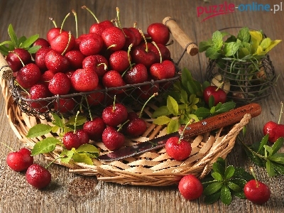 Puzzle Koszyk, Czereśnie, Nóż