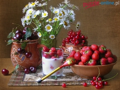 Puzzle Czereśnie, Rumianki, Truskawki, Porzeczki