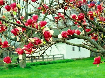 Czerwona, Dom, Łąka, Magnolia