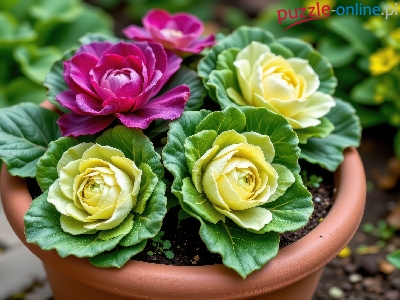 Kapusta ozdobna, Biała, Czerwona, AI, Doniczka
