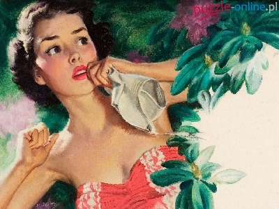 Puzzle Czerwona, Ładna, Dziewczyna, Sukienka