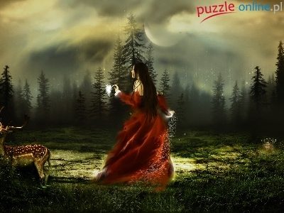Czerwona, Sarenka, Las, Dziewczyna, Suknia
