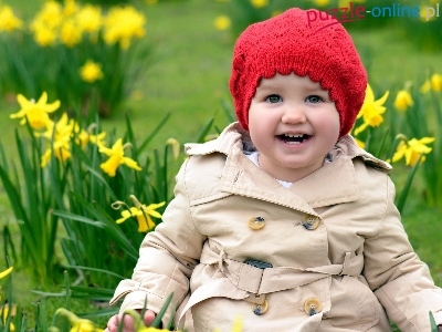 Czerwona, Żonkile, Dziecko, Dziewczynka, Czapka