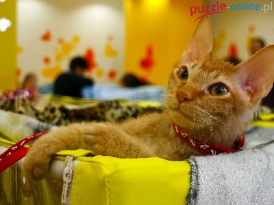 Puzzle Czerwona, Rudy, Kot, Smycz