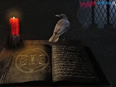 Puzzle Czerwona, Księga, Kruk, Świeczka