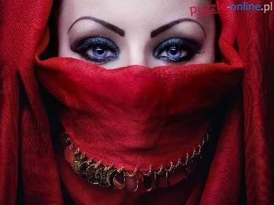 Puzzle Czerwona, Kobieta, Makijaż, Chusta