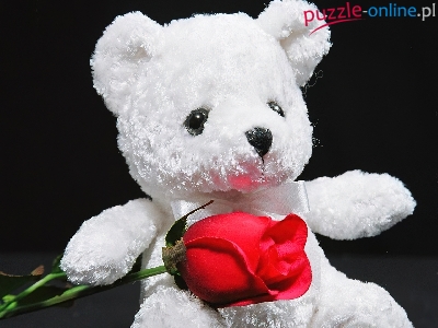 Puzzle Czerwona, Biały, Miś, Róża
