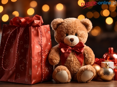 Bombki, Kompozycja, Prezent, Pluszowy, MiÅ›, Kokarda, Zabawka, Czerwona