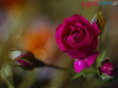 Puzzle Czerwona, Kwiat, Róża, Bokeh