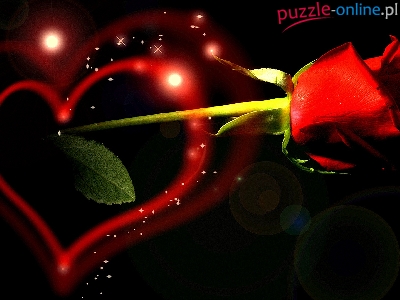 Puzzle Czerwona, Walentynki, Serce, Róża