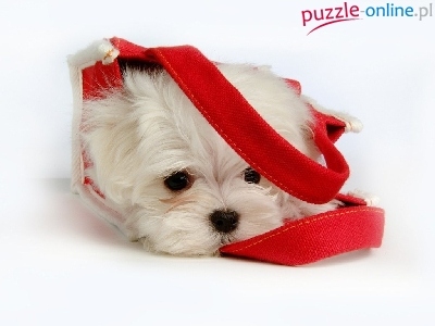 Puzzle Czerwona, Biały, Szczeniaczek, Torba