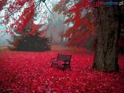 Puzzle Czerwone, Park, Ławka, Liście
