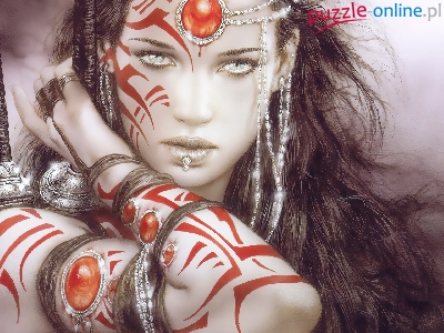 Puzzle Czerwone, Kobieta, Biżuteria, Tatuaże