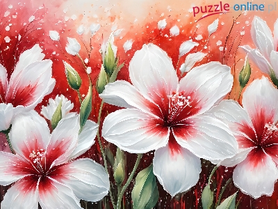 Puzzle Grafika, Kwiaty, Biało-czerwone