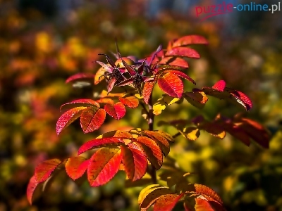 Puzzle Czerwone, Gałązka, Jesienne, Listki