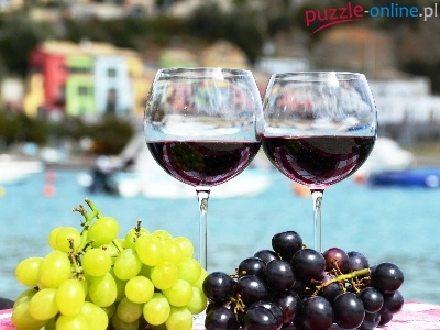 Czerwone, Winogrona, Dwa, Kieliszki, Wino