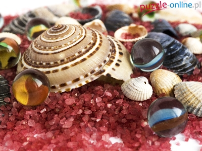 Puzzle Czerwone, Muszelki, Kulki, Kamyczki
