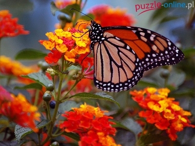 Puzzle Czerwone, Motyl, Kwiaty, Żółte