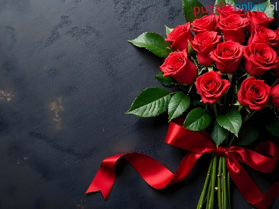 Kokarda, Róże, Kwiaty, Czerwone, Czarne tło, Wstążka