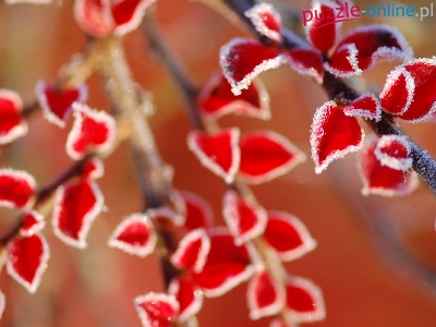 Puzzle Liście, Czerwone, Szron