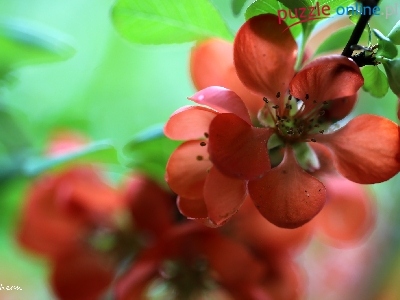 Puzzle Czerwone, Krzew, Pigwa, Kwiaty