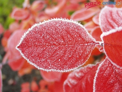 Puzzle Czerwone, Zamrożona, Roślina, Liście