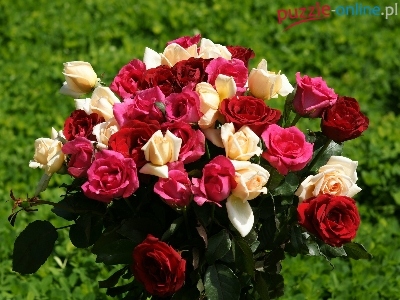 Puzzle Czerwone, Bukiet, Róż, Różowe