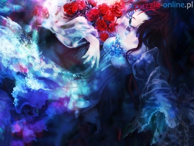 Puzzle Czerwone, Dziewczyna, Róże, Suknia