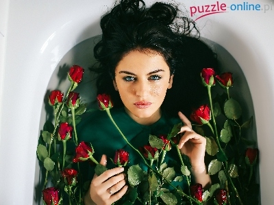 Puzzle Czerwone, Brunetka, Aurela Skandaj, Róże