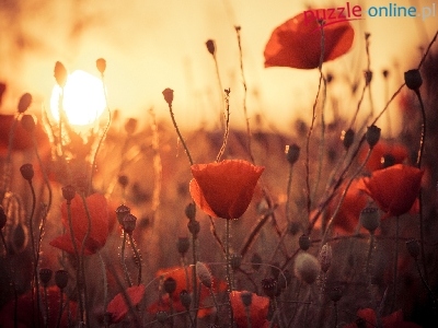 Puzzle Czerwone, Zachód, Słońca, Maki