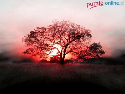 Puzzle Słońce, Czerwone, Drzewo