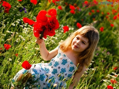 Puzzle Czerwone, Dziewczynka, Sukienka, Maki