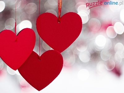 Puzzle Czerwone, Walentynki, Trzy, Serca