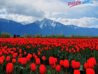 Puzzle Tulipany, Czerwone, Góry