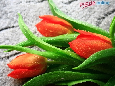 Puzzle Tulipany, Czerwone, Krople