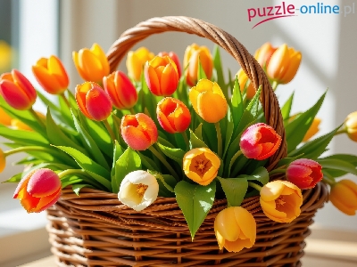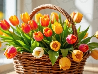 Wiklinowy, Żółte, Kwiaty, Czerwone, Koszyk, Tulipany