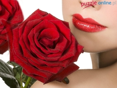 Puzzle Czerwone, Kobieta, Usta, Róże
