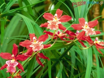 Czerwono, Storczyki, Zielone, Liście, Białe