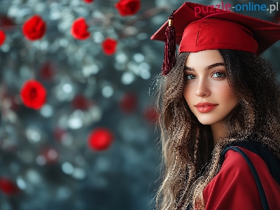 Toga, Studentka, Kobieta, Czerwony, Kwiaty, Biret