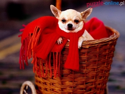Puzzle Czerwony, Koszyk, Chihuahua, Szalik