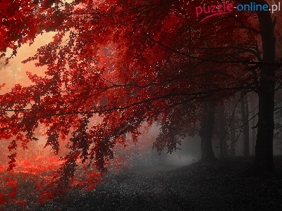 Puzzle Czerwony, Jesień, Drzewa, Szary